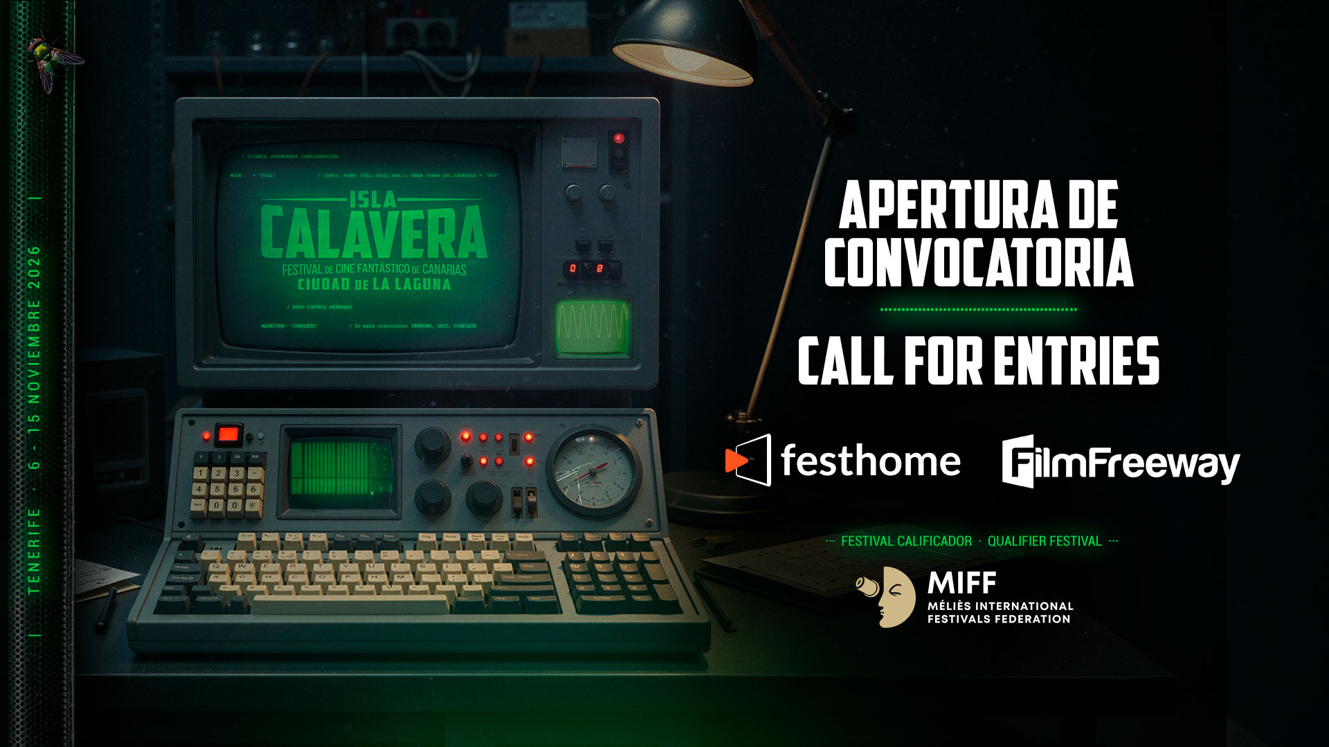 El Festival de Cine Fantástico de Canarias Ciudad de La Laguna Isla Calavera abre la convocatoria para la recepción de largometrajes y cortometrajes para participar en su décima edición, que se celebrará del 6 al 15 de noviembre de 2026 en Tenerife. Con esta nueva llamada a creadores de todo el mundo, el certamen reafirma su posición como una de las citas de referencia del cine fantástico en España y un punto de entrada clave dentro del circuito internacional de festivales de género.